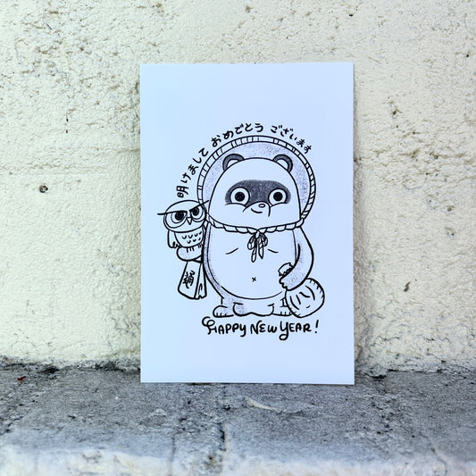 Tanuki Happy New Year Postcard · Paper Plant Co