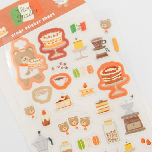 Viva! Italia Dessert Bear Transparent Sticker Sheet · Furukawashiko