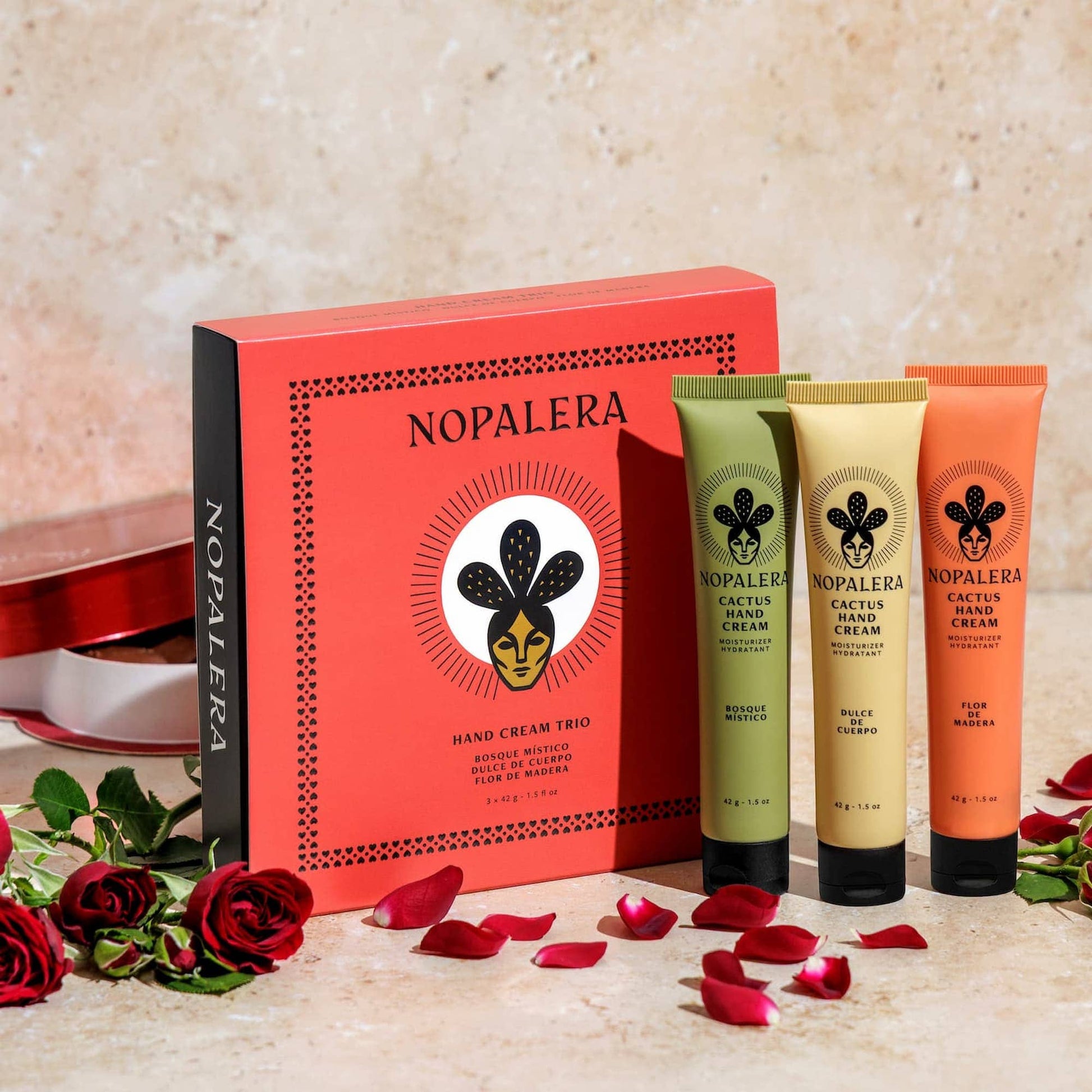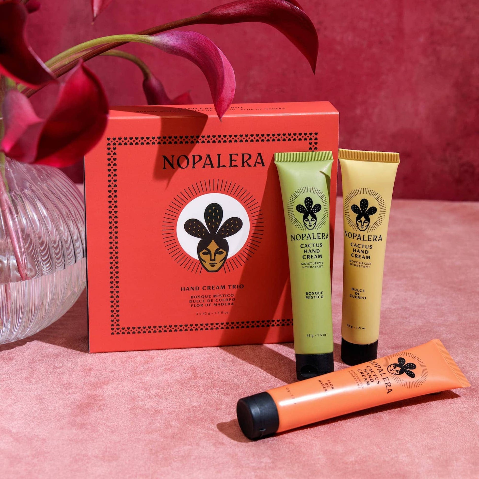 Just in time for Valentine’s Day, our bestselling Hand Cream Trio is presented in beautiful, gift-ready limited-edition packaging. The same cactus-powered formulas you love, now designed to make gifting effortless and meaningful for the season of love. Three creams, the gift of a ritual. Inspired by the soul of Mexico City, this luxurious trio features our bestselling scents Bosque Místico, Dulce de Cuerpo, and Flor de Madera in rich, restorative formulas.