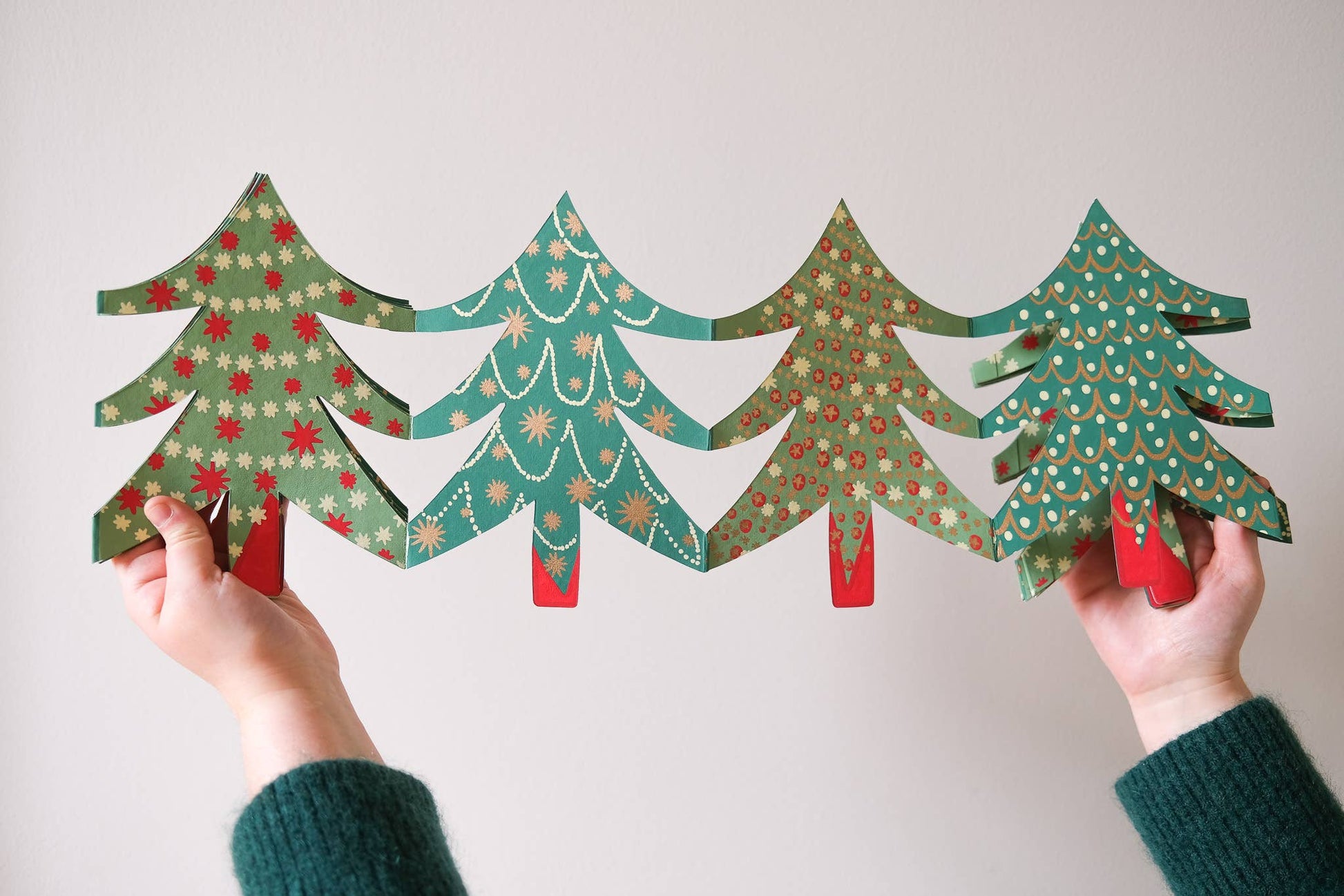 With pops of metallic ink, this patterned Christmas tree garland is the perfect traditional festive decoration to adorn your home.