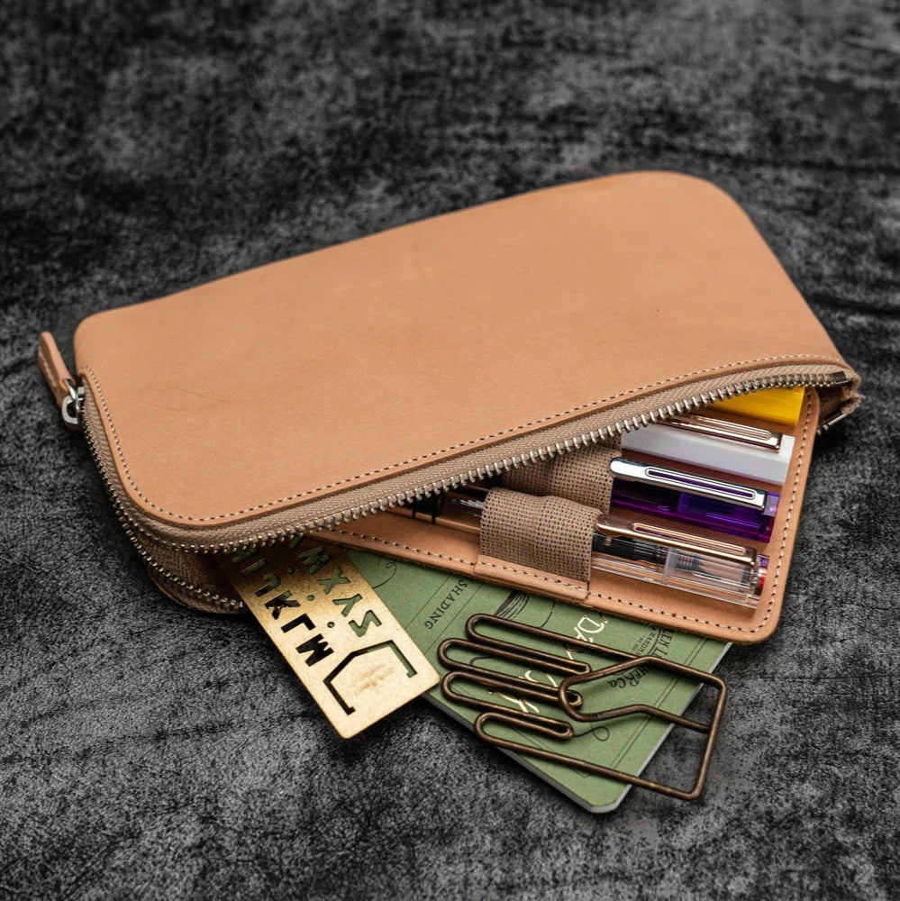 Leather Zippered Pen Pouch / Un-dyed 4 Slots · Galen Leather Co.