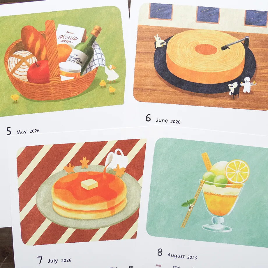 This calendar by Fukuoka Mariko features small, round-eyed animals and adorable, delicious-looking sweets. The