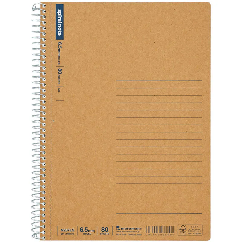 Maruman A5 Basic Spiral Notebook 6.5mm Ruled