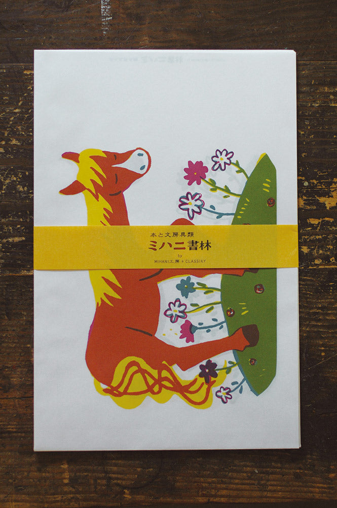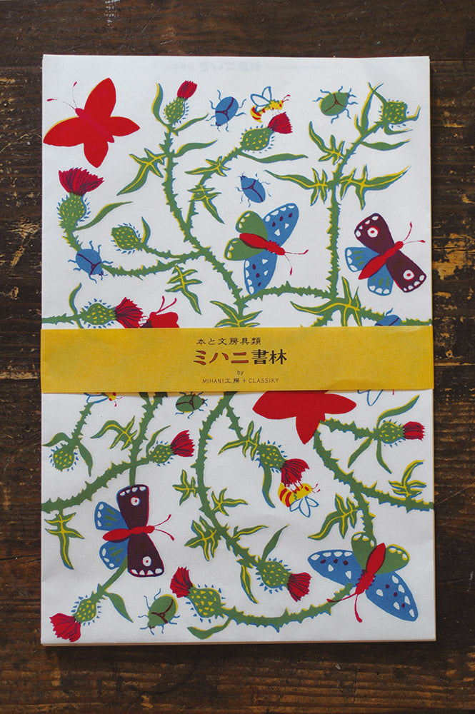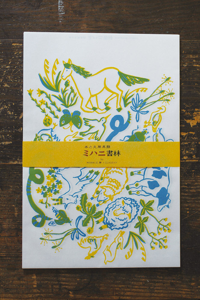 with five customers . They bow and crab-walk as they pass each other. The bookshelves on both sides are filled with natural science books, mainly about plants and animals, and the desk in the middle is filled with original stationery. The owner, Kaya, is always sitting at the back of the counter, with her sketchbook open, pondering something. It would be wonderful if a shop like that could exist somewhere someday.
