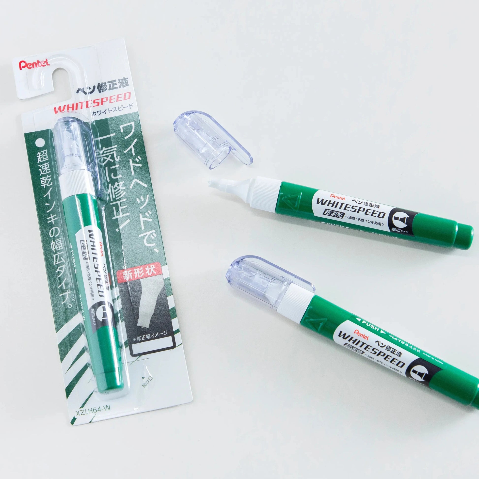 After prototyping over 2,000 types of ink, Pentel created an ultra-fast-drying ink that dries half as fast as conventional products. When it dries, it has a matte texture, so the ink adheres firmly even on the correction surface, allowing you to rewrite with clear handwriting.
