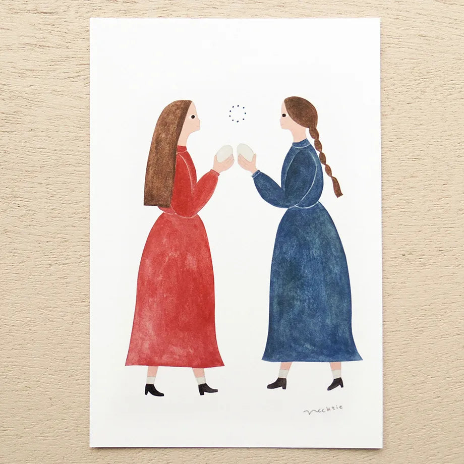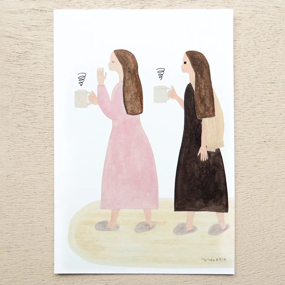 Postcards by the illustrator unit Necktie. The motifs on the postcards are actually a word chain game, full of humor! The answer to the word chain game is here.