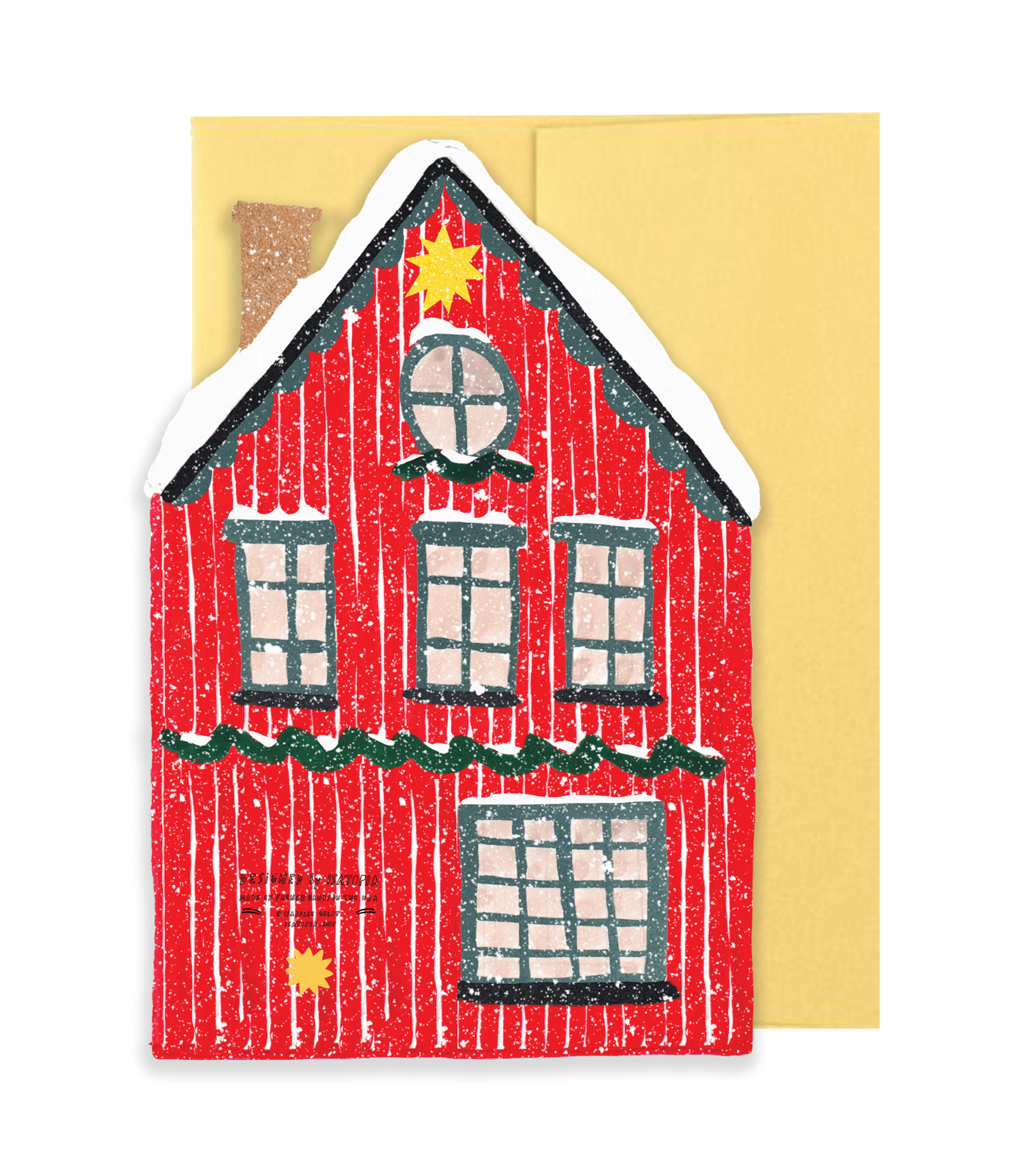 Red Cottage Die Cut Card - Winter Cottage Collection ยท Isatopia