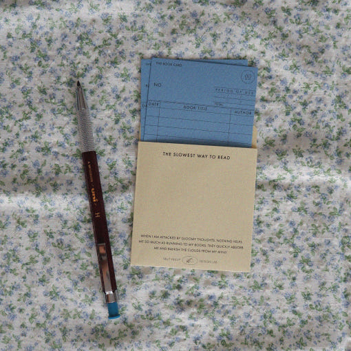 A hint of nostalgia and a fun way to keep track of notable books you've read! The blue book card and beige envelope are the perfect combo.