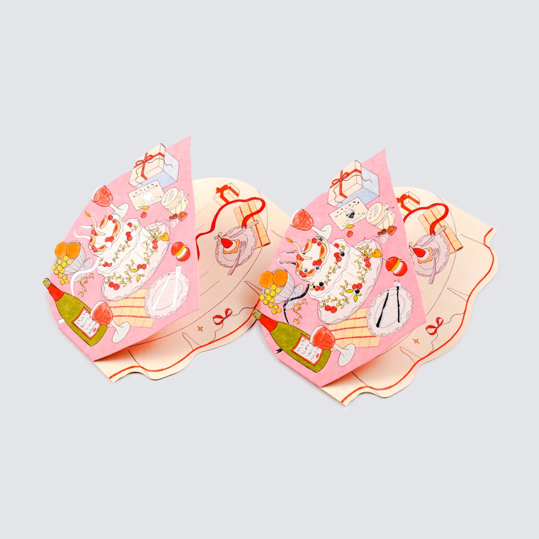 This card is designed like a party table, beautifully set with flowers, cake, and delicious food. As you think of someone dear, write them a message and share your heart.