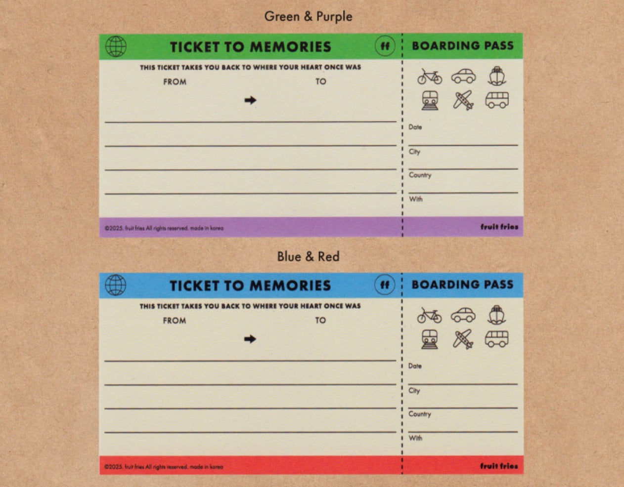 Ticket to your wonderful memories! Add colorful memorabilia to your stationery.